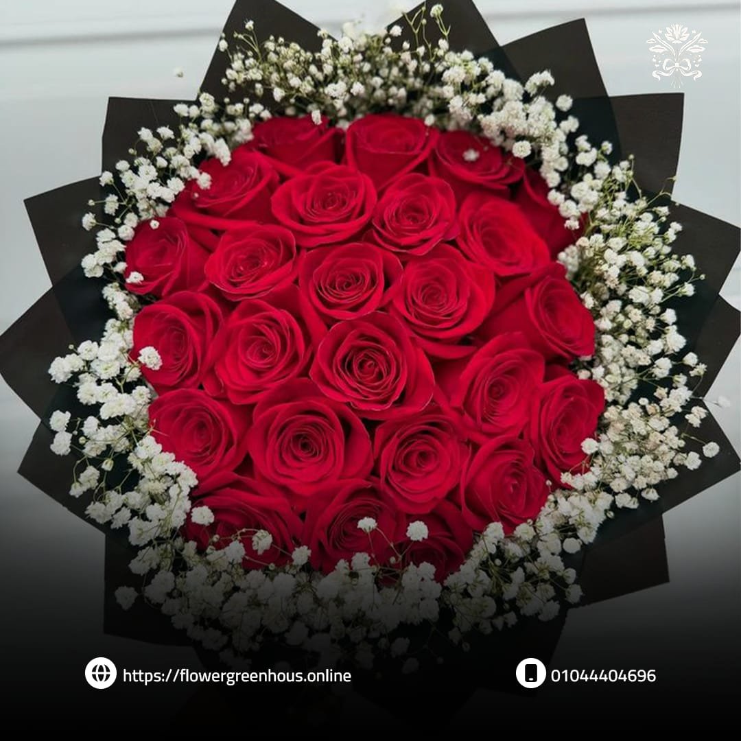 بوكيه هاند من الورد الأحمر المستورد والبيبي فلاورعدد ٢٠ زهره